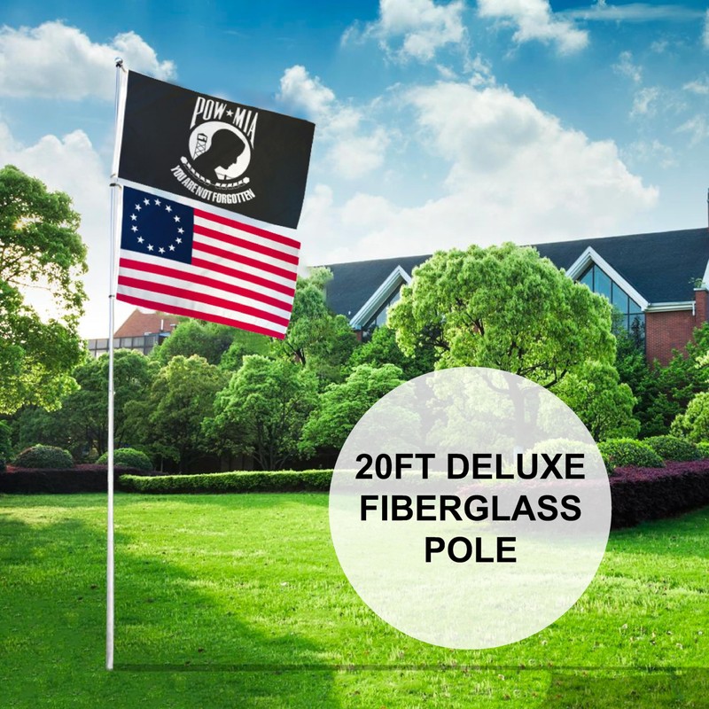 20ft Deluxe Fiberglass Residential Flag Pole - for Multiple Flags & Storage Bag Included