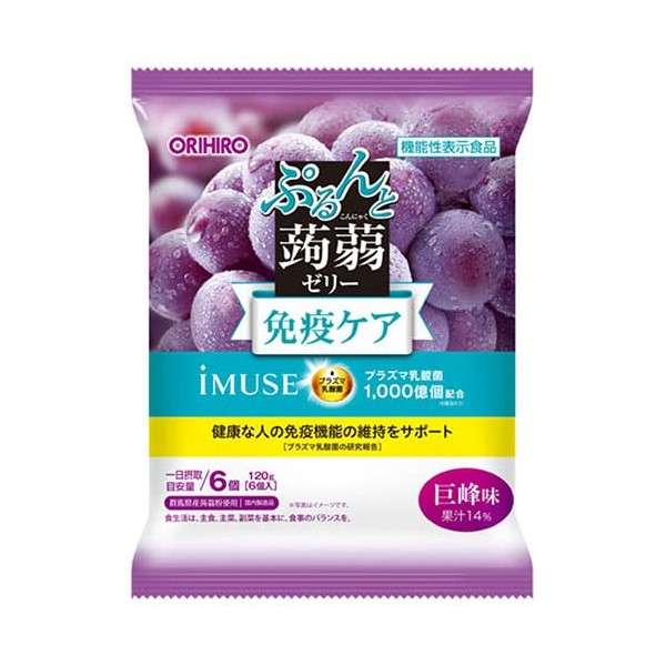 オリヒロ ぷるんと蒟蒻ゼリー 免疫ケア プラズマ乳酸菌 (巨峰) (20gパウチ×6個)×24袋入×(2ケース)