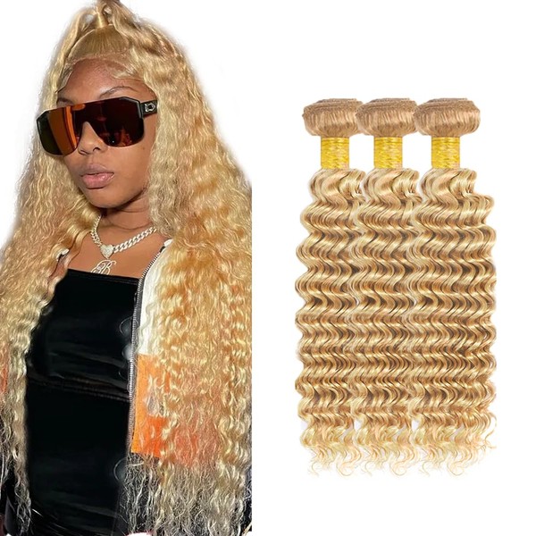 - 【Honey Blonde Bundle Material】:Unprocessed Brazilian Virgin Human Hair, 8A Honey Blonde Deep Wave Human Hair Weave, Natural Health.