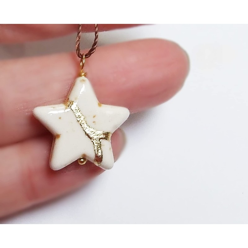 20mm White Howlite Star Pendant Mended with 23k Gold, Kintsugi Cord Necklace