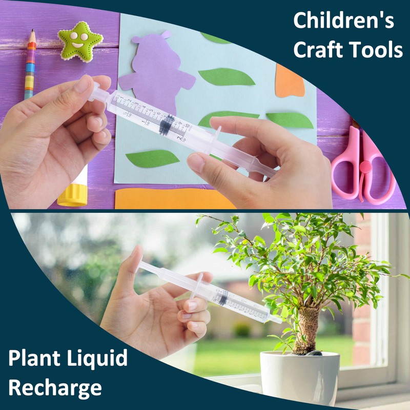 1ml/3ml/5ml/20ml four sizes of plastic syringe to meet your different use needs. Syringes with cap can be used as liquid measuring, filling, watering, applicator and other scientific laboratory supplies, but also can be used for Pet feeding, party favors, art painting and other daily use.