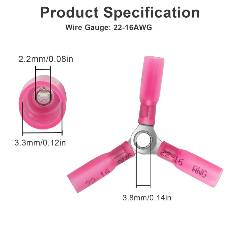 - Premium Materials: Y-Ring butt connectors made of high quality tin-plated copper for superior durability. Equipped with heat-shrinkable tubing made of exceptional polyethylene that tightly wraps around the connector to provide an extra layer of protection, enhancing insulation and extending the life of the wire