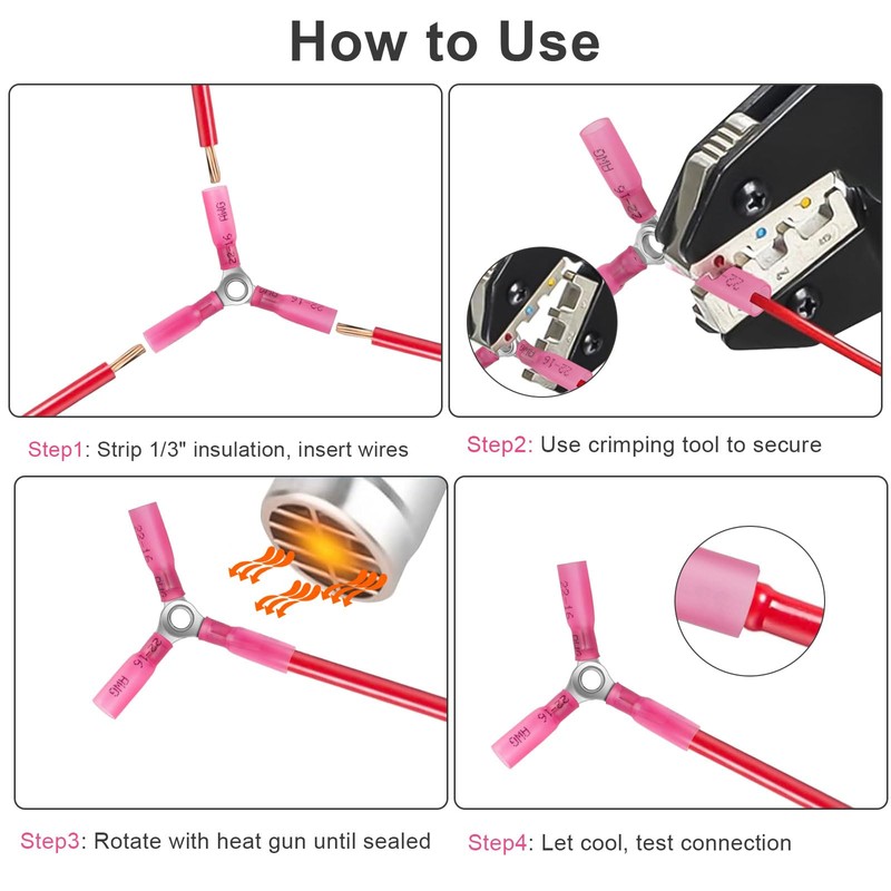 - Easy Installation: Unique Y-shaped design simplifies the process of connecting multiple wires, easy to complete the wiring without complex tools. Simply strip the wire, place, crimp, and apply heat for a secure seal