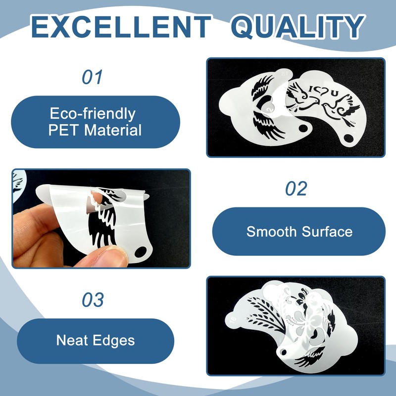 - Eco-Friendly & Reusable Material: Crafted from durable, eco-friendly PET material, these stencils for painting are washable and reusable. Ideal for creating face glitter for kids, body art, or use as painting templates on walls or crafts
