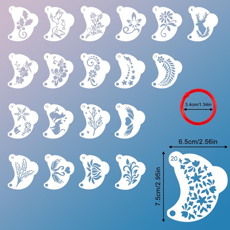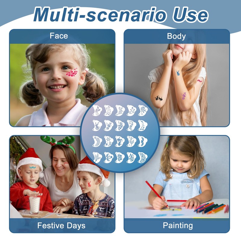 - 20 Unique Festival Face Paint Designs: Includes 20PCS face paint stencils reusable for kids, featuring flower stencils, animal stencils, hearts, reindeer, swans, and more—perfect for creative play, face tattoos for kids, or festival face paint fun