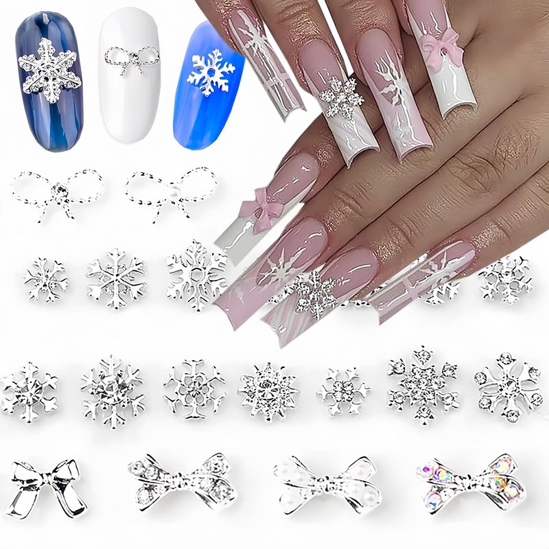 - Holiday Nail Charms: You will get 20 pcs snowflake bows nail rhinestones, Can add a strong fashion atmosphere; Perfect for women girls, exquisite nail design, DIY fashion nail decoration