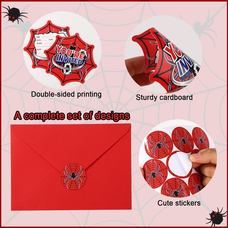 - Wide Application: This set of invitation cards is suitable for boys and spider fans, whether it is a spider-themed party or a children's birthday event, it will be a hit. These party invitation cards are more than just invitations, they are a fun way to get your guests excited for your special moment.