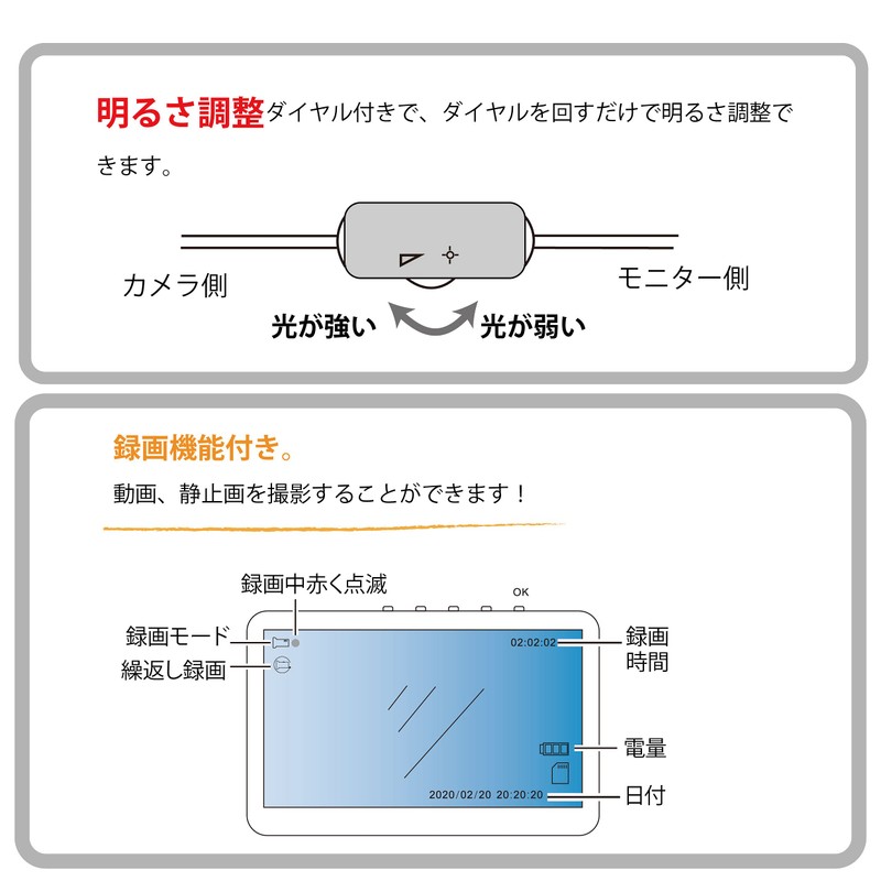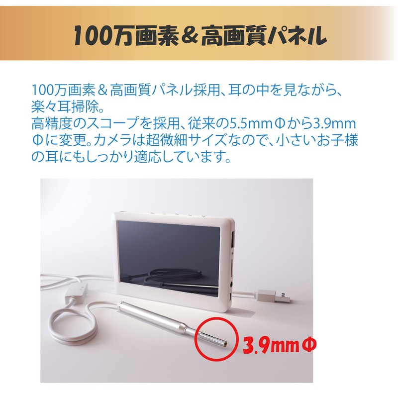 - 100万画素&高画質パネル採用、耳の中はっきり見れます。