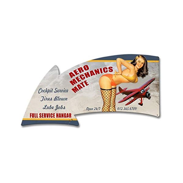 21 X 11 Plasma Metal Sign - Aero Mechanics Mate Full Service Arrow