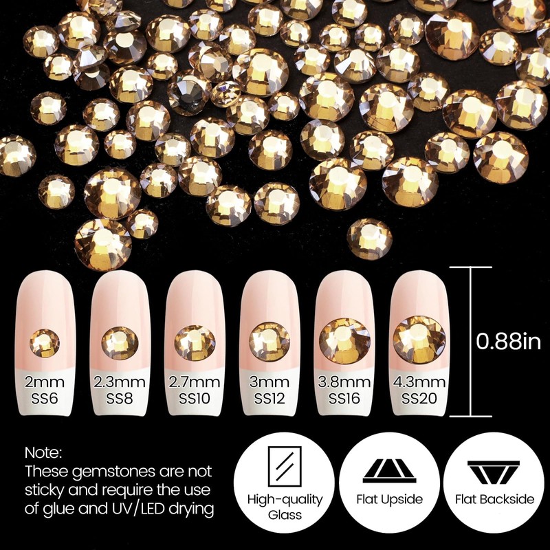 - Total 2120 pcs sparkling champagne gold rhinestones nail crystals