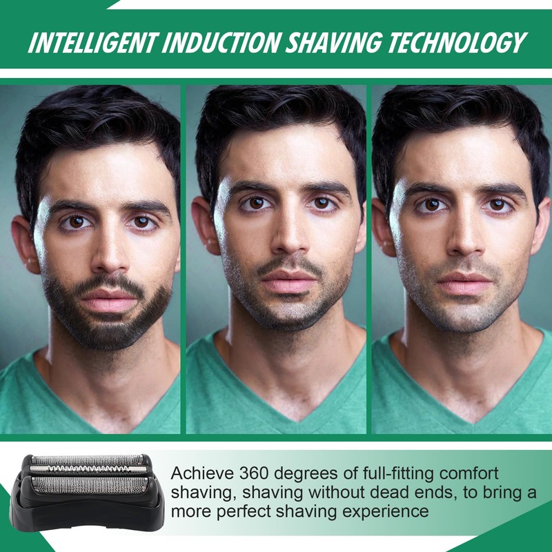 - Service life: the unique back and forth blades have a shrinkage time at the beginning of use. If you feel that it takes longer to shave, this is normal! It will only be sharper with use! To ensure the best shaving experience, it is recommended to replace the foil and shaving head every 9-12 months, depending on the daily frequency of use.