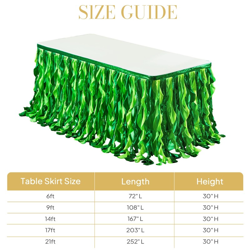 21Ft Gradient Green Sequin Table Skirt for Rectangle Tables,Hawaiian Ruffled ...