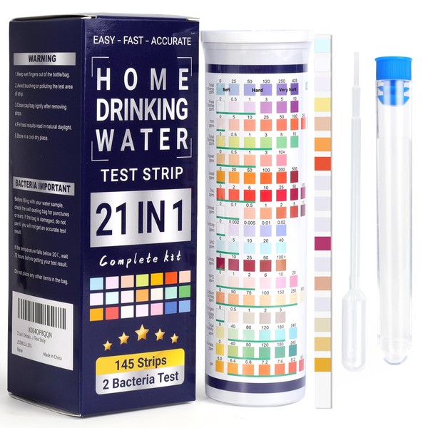 21in1 Drinking Water Test Kit - 145 Strips + 2 Bacteria Tests - Drinking Wate...