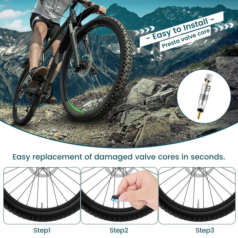 - EXCELLENT AIR TIGHTNESS: Enhanced seal, triple-thread precision design outperforms industry leakage standards, our presta valve cores are engineered to provide exceptional air tightness, effectively preventing air leaks and maintaining optimal tire pressure.