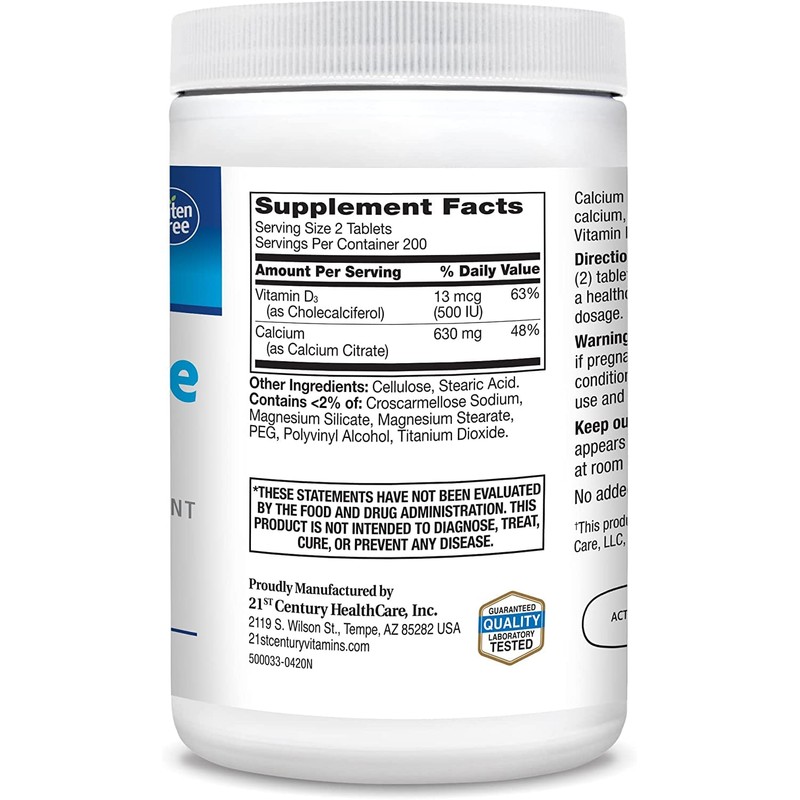 21st Century Calcium Citrate + D3, 400 Tablets Per Bottle (2 Pack)