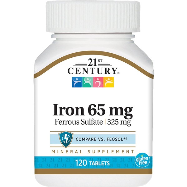 21st Century Iron 65 Mg Ferrous Sulfate 325 Mg Tablets, 120 Count (Pack of 2)
