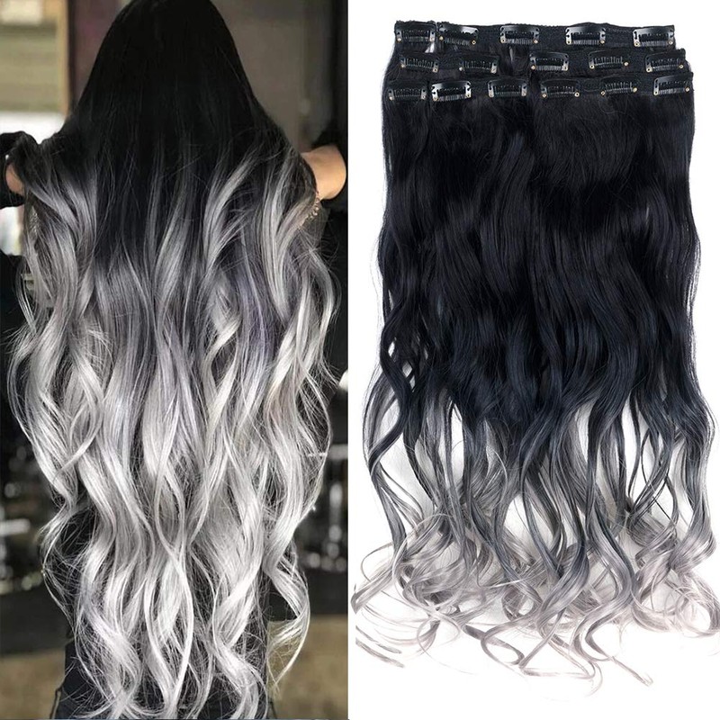 22" 7 Pieces Long Wavy Full Head Synthetic Hair Extensions Thick Double Weft ...