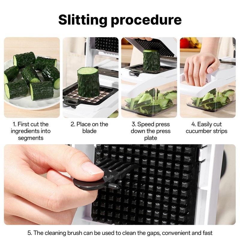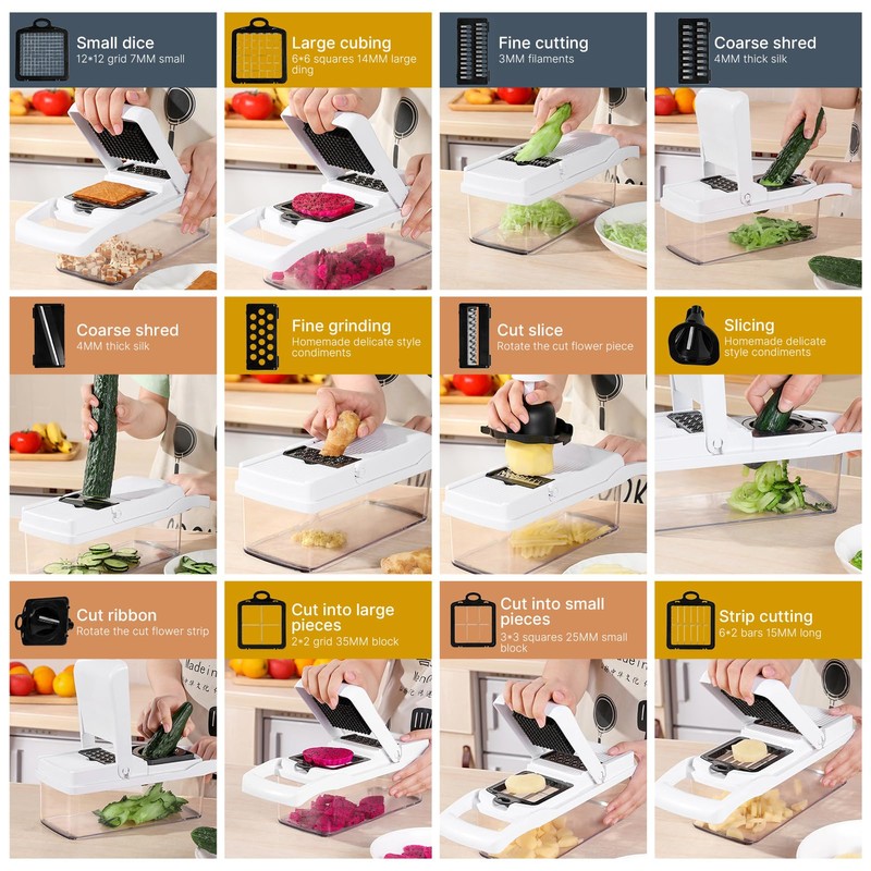 - Easy Meal Prep: Our vegetable chopper with multiple accessories to help you dice potatoes, tomatoes, cucumbers, carrots, and egg yolk separation. Shredding, slicing, strip, cutting, dicing and grinding in one machine.