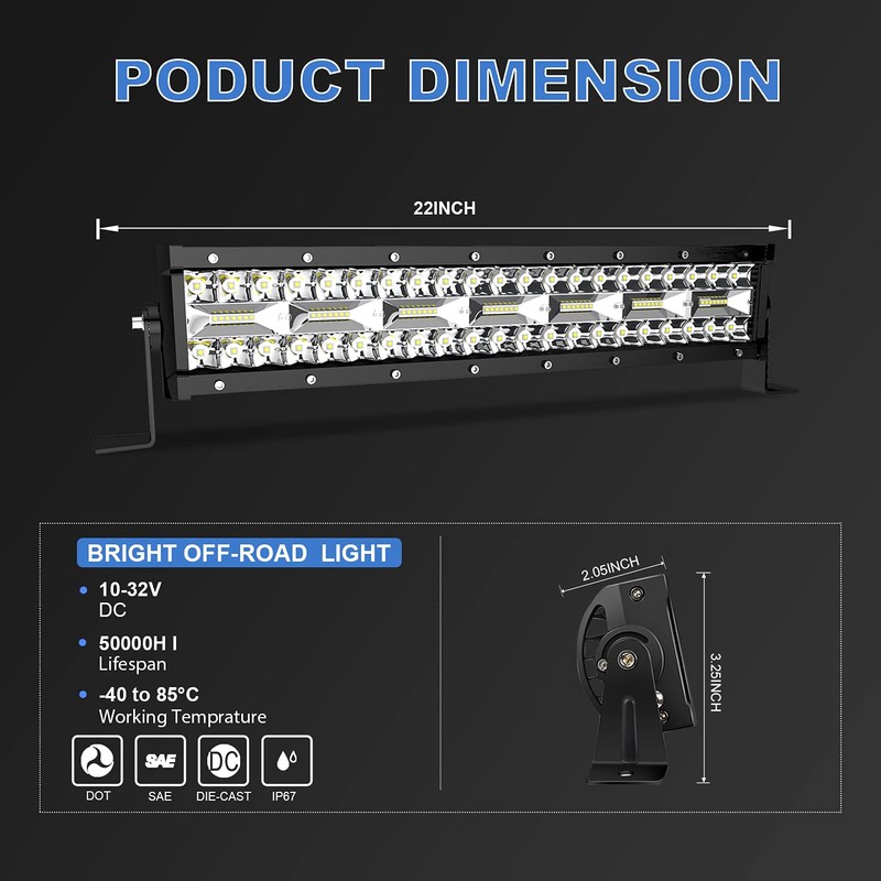 - 【SUPER BRIGHT】The LED bar with triple row chips,delivering 6000k bright cool white light, and the particular beam design ensures that objects at about long distance are clearly visible and drivers have super-wide viewing eyesight to observe potential threats.