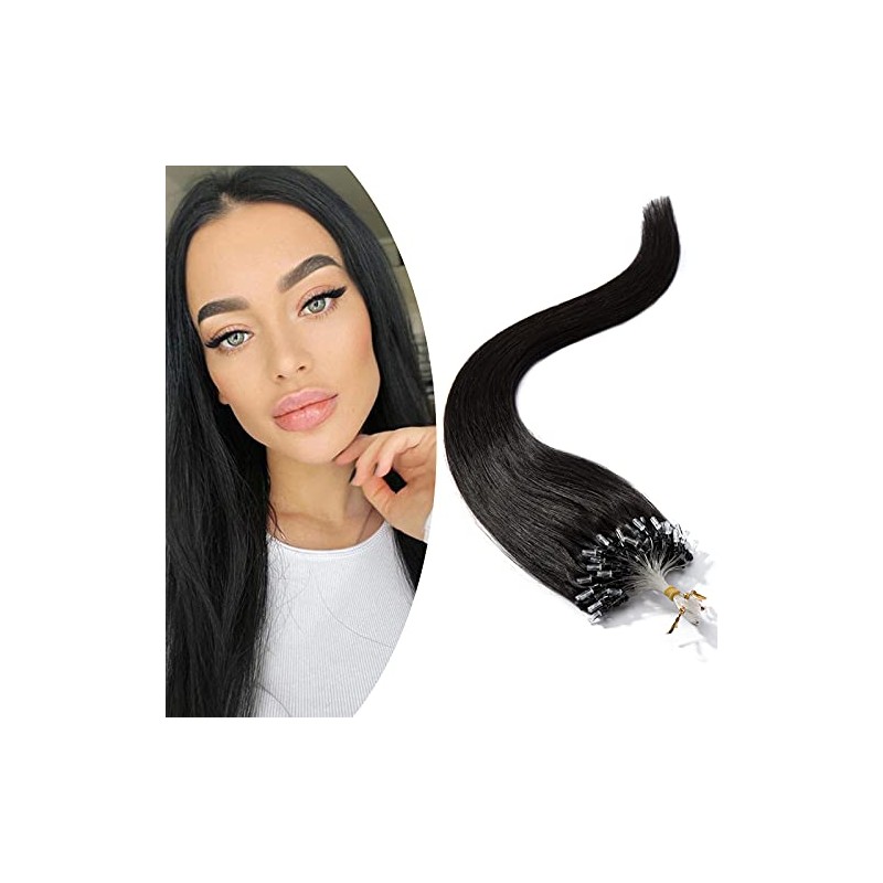 22 inches SEGO Micro Loop Human Hair Extensions 100% Remy 100 Strands [#1B Natural Black] Pre Bonded Micro Ring Beads Invisible Straight (50g)