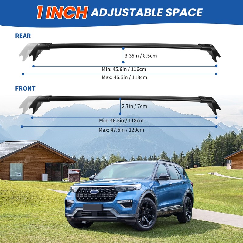 - Adjustable Length: Each crossbar includes 1 inch of adjustable space to accommodate varying roof rail widths. This feature allows for a customizable fit to ensure compatibility with your vehicle's roof rail configuration