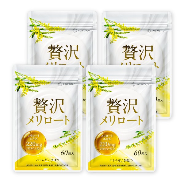 【メリロートエキス 220mg 贅沢配合 】POPONO 贅沢 メリロート 国内製造 アサイー ヒハツ カリウム ハトムギ 13種の巡りサポート成分 (4袋)