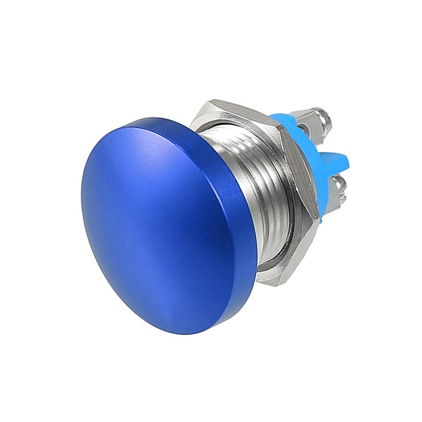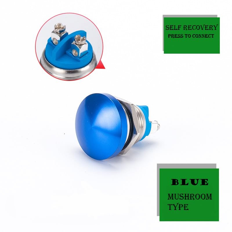 22mm Self Reset Push Button Switch Metal Mushroom Head Round Start Button AC/DC 12V-250V, Domed Screw Terminal, Suitable for 0.86 '' mounting Hole(Blue)
