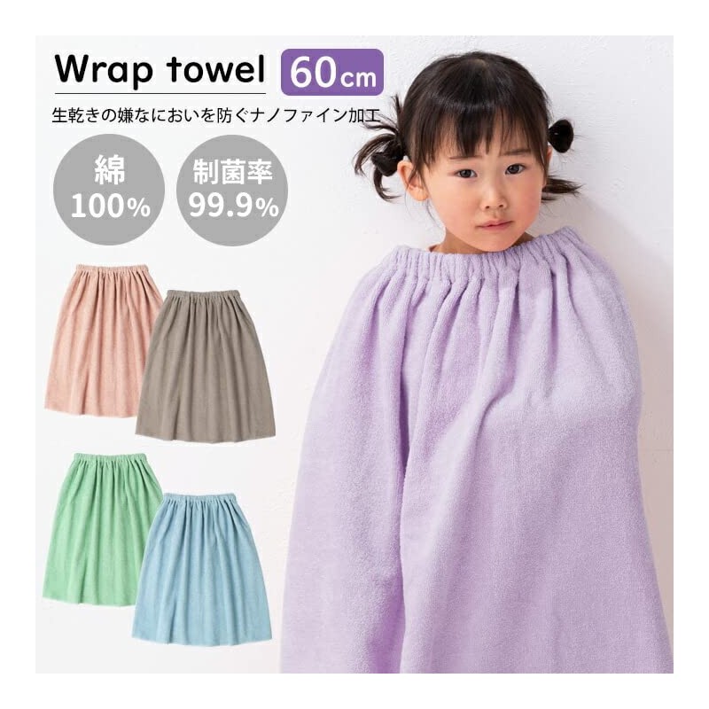 23.6 inches (60 cm) Long Plain Kids Wrap Towel Moss Pink