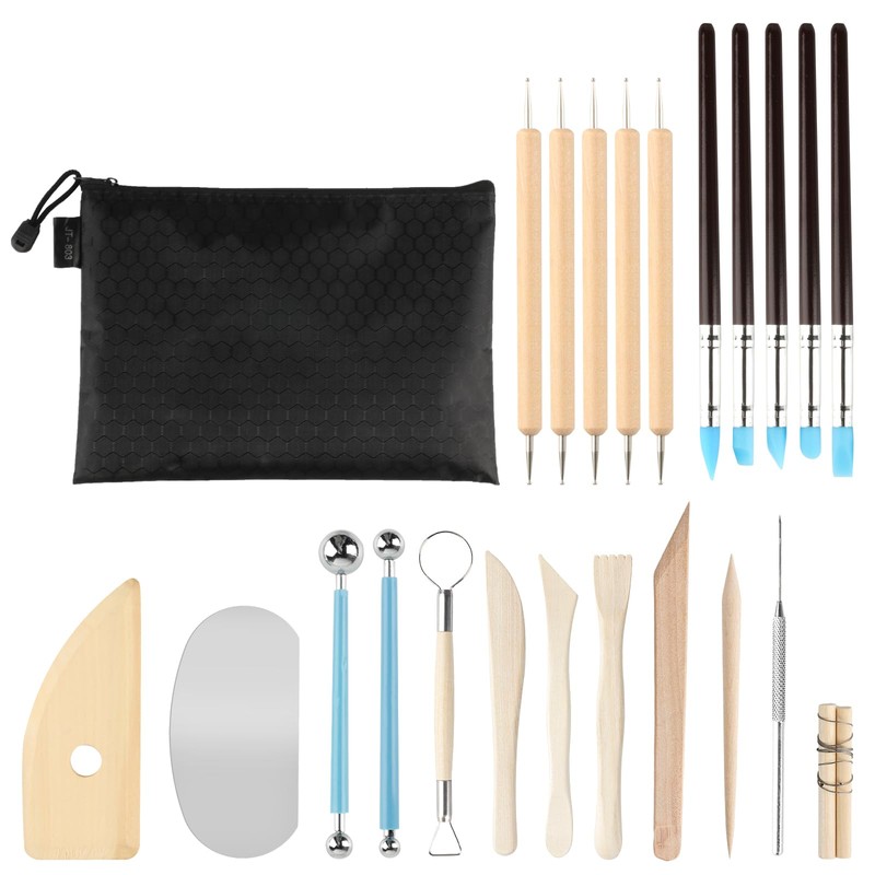 - 23 pieces polymer clay tools: you will receive 2 x modelling sticks (No. 1/No. 4), 6 x wooden tools for shaping clay, 15 x pottery tools for modelling clay, 1 x storage bag (24 x 18 cm), storage. The bag is convenient to carry, easy to carry and store, so all tools are well organised