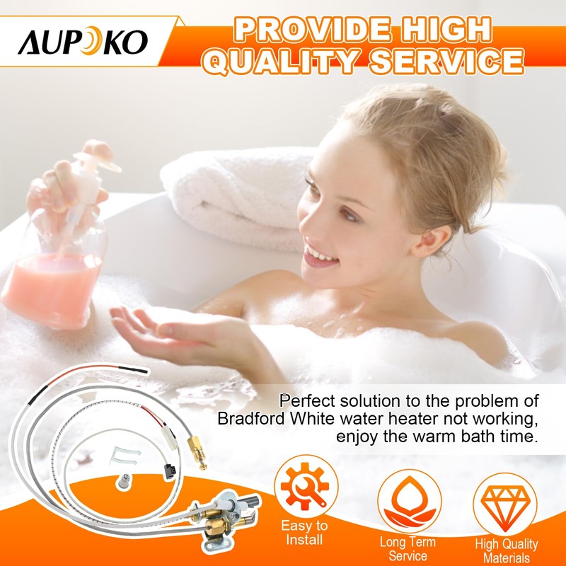 Bradford white pilot assembly can solve the following problems, ①the water heater pilot light kept going out, ②the water heater not heating due to thermocouple damage, ③the water heater does not heat or heating efficiency is not high, there is intermittent heating, ignition is not normal, etc.. Simply replacing this water heater parts will solve the problem.