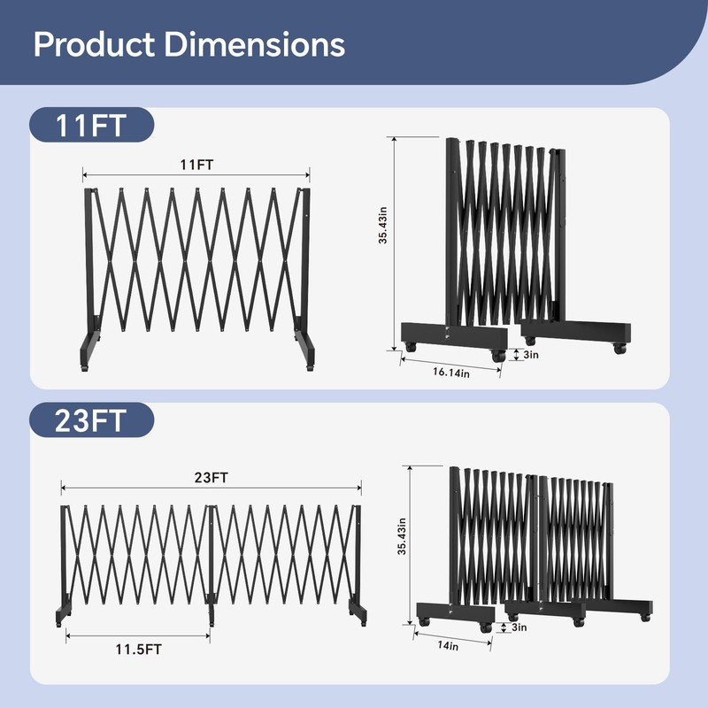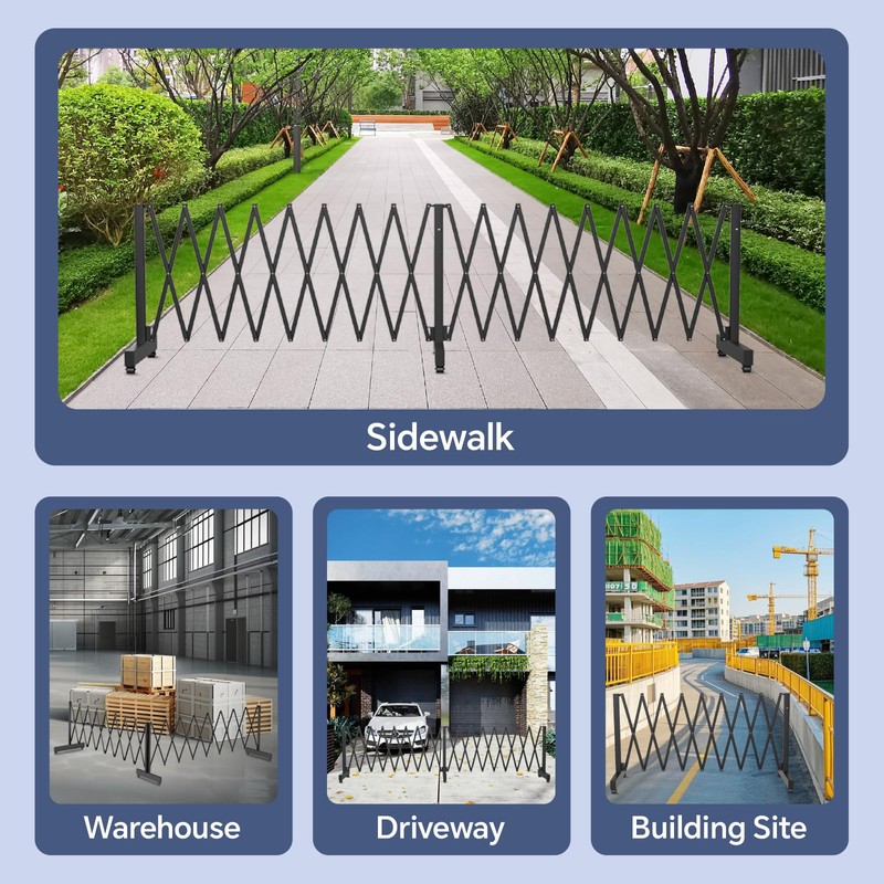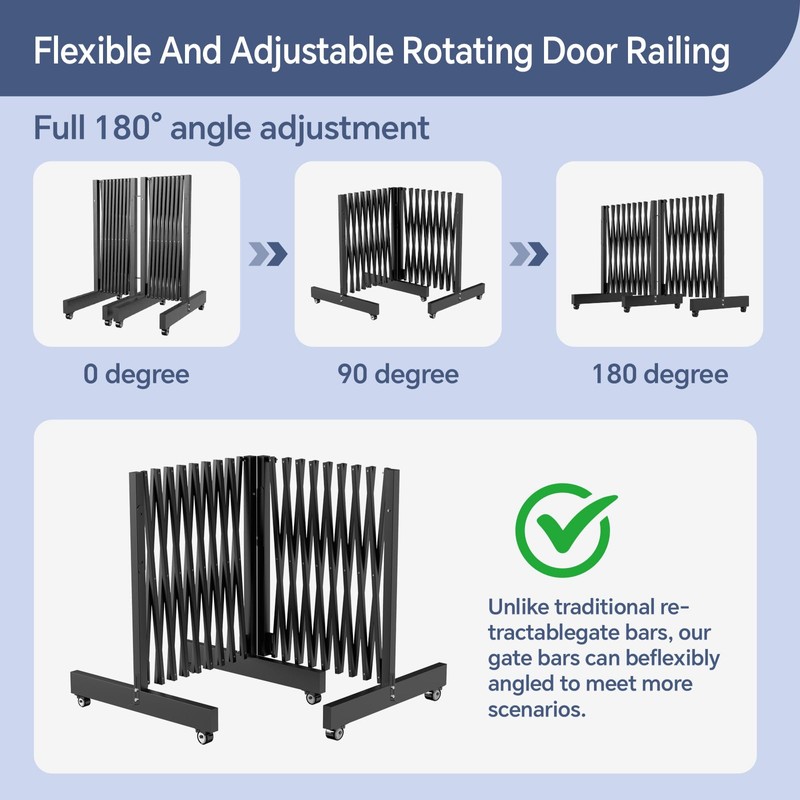 - 360° Oversized Rotating Wheel Design:The Outdoor metal expandable barricade gate features a highly wear-resistant silent 360 ° swivel wheels, smooth high-quality pulleys with locks that won't slide on slopes, and you can easily move it anywhere.