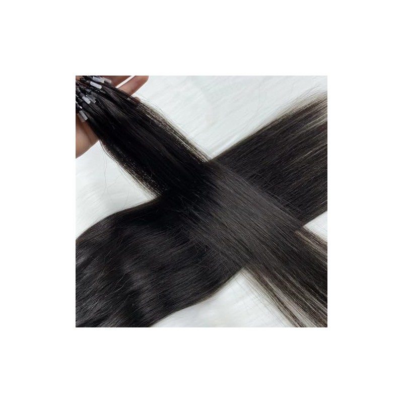 24'' Hair Extensions Micro Loop Rings Beads Human Hair Extensions Remy Hair Extensions Double Drawn - 1g/s 50s/pack - (24" #1B Natural Black)