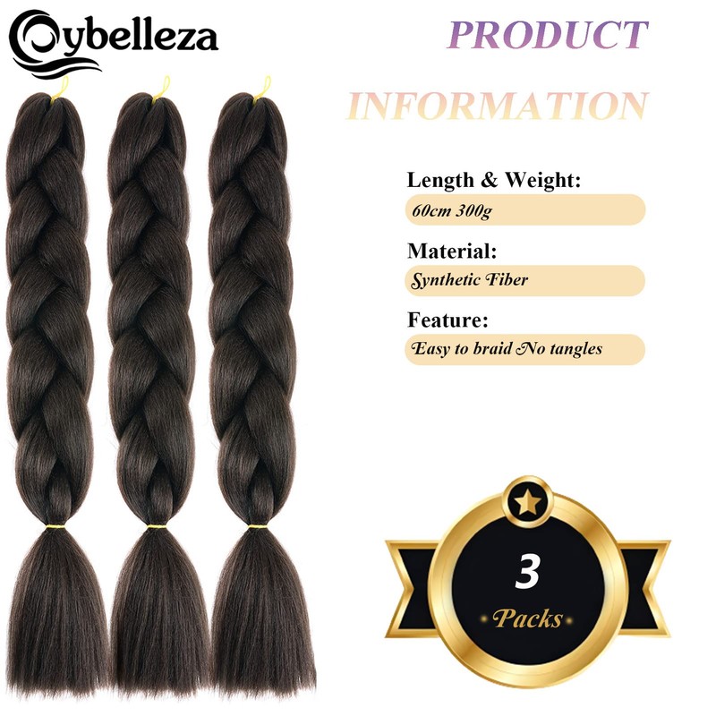 24 Inch Braids Extensions, Jumbo Braids, Synthetic Hair, 3 Bundles, Kanekalon Synthetic Crochet Hair, Braiding Hair, Afro Box Braiding (Medium Brown)