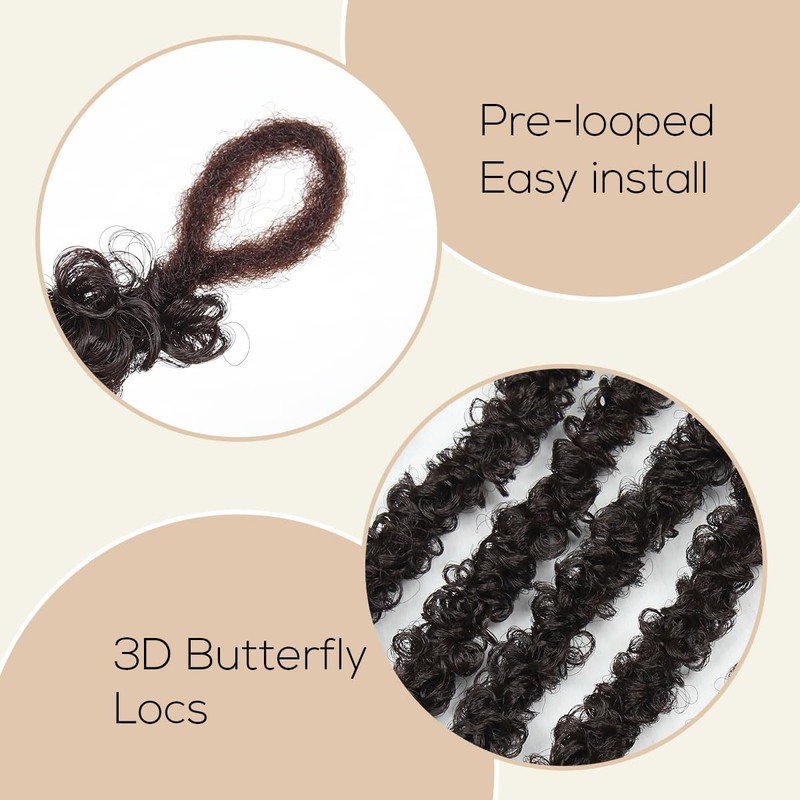 - Easy to Install Crochet butterfly Locs: the pre-looped thin top makes butterfly crochet hair locs easy to install and looks more natural. As the high quality of faux locs material, the items are neat and tidy, less messy hair, and easy to maintain.