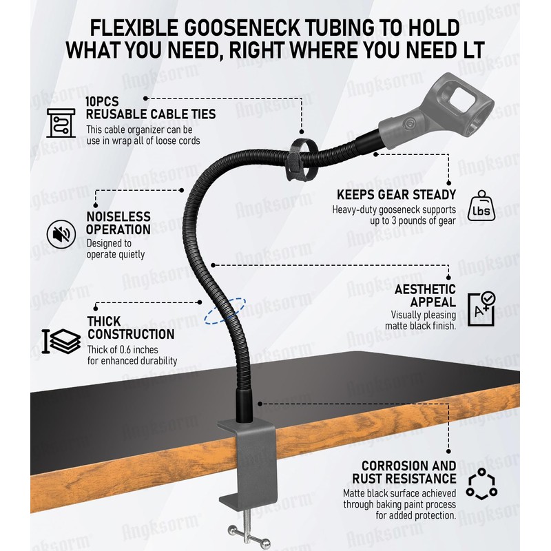 - ADDS HEIGHT TO STANDARD MIC STAND - The Angksorm mic gooseneck extension tube fits most mic stands, tripod, boom arms, mic flange mounts, desk stand bases, and all standard mics, including snare, high tom, medium tom, floor tom, and more. For camera, light, and webcam users, additional thread adapters may be needed. This mic gooseneck allows for optimal mic positioning by providing the necessary height and clearance, making it indispensable for both studio and live mic setups.