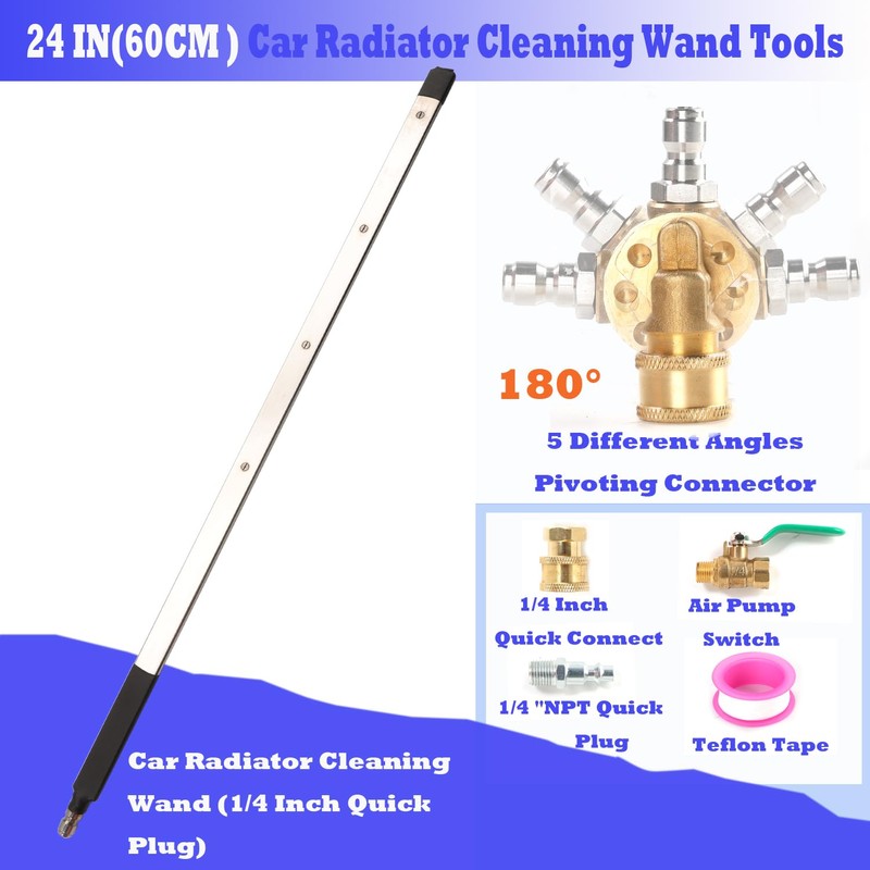 - Quick Connect Design for Effortless Operation: Our radiator flush kit boasts a quick connect design equipped with a 180° adapter for flexible cleaning angles. The 1/4-inch interface is compatible with most pressure washer guns, and it comes with a 1/4-inch NPT quick adapter and switch for seamless connection to pressure air pumps. Easy-to-follow operation steps make it user-friendly, saving you time and effort
