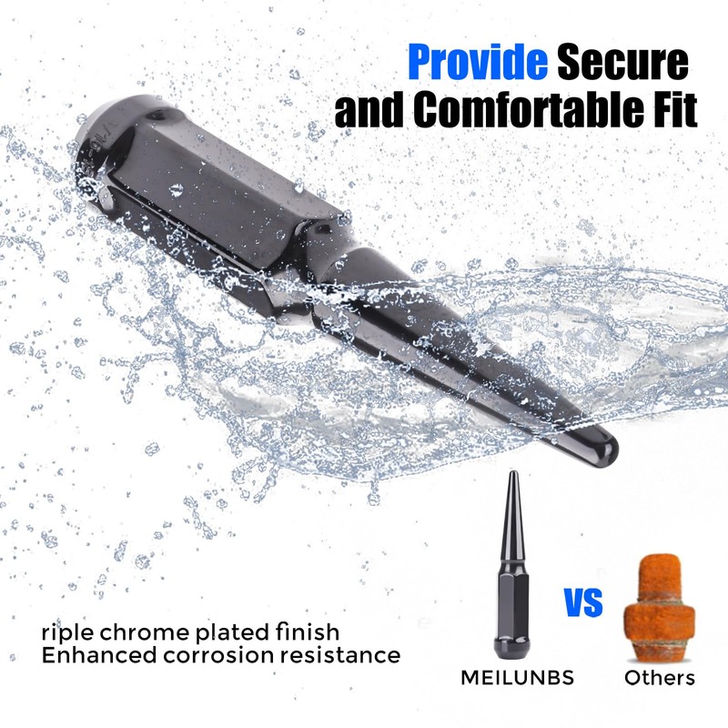 - [Premium material] : These M14 x1.5 lug nuts are made of high-strength alloy steel and have been electroplated with Chrome to undergo a 72-hour salt spray test to significantly improve hardness, stiffness, durability and corrosion resistance. The upgraded lug nuts bring enhanced visual impact, exude strength and style, while enhancing security with anti-theft features.