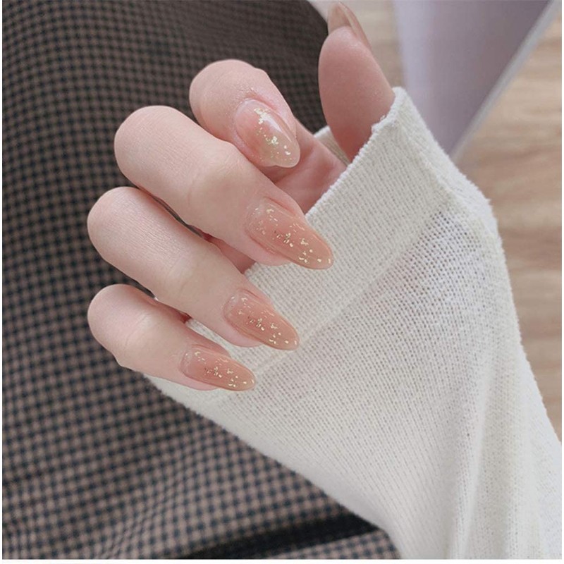 24 Nail Tips, False Nails, Long, Gold Foil Nails, Adult Cute, Female Nails