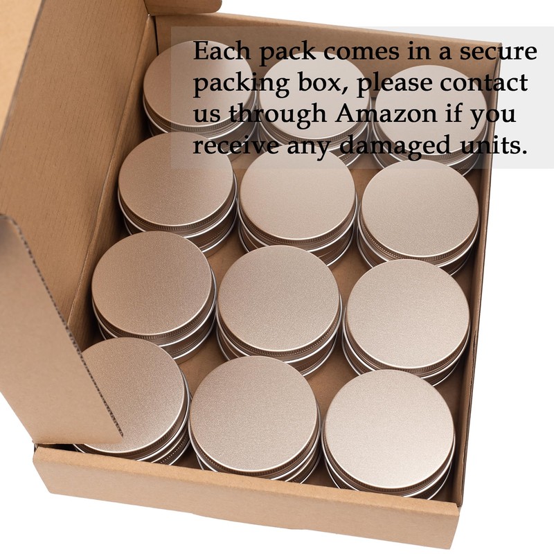 24 Pack 4oz/120ml Screw Top Aluminum Tin Jars with Screw Lids and Blank Labels - Refillable 120ml Metal Containers for Lip Balms, Candles, Salves, Spices, Crafts(Champagne)