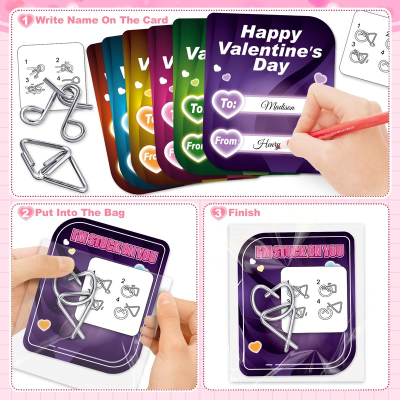 - Valentine Exchange Cards for Kids: Designed for school and classroom fun, these class valentines cards set includes kids valentines cards and metal puzzles that offer a brain-teasing challenge, which is perfect for kids valentines day gifts cards for school, valentines party favors, school classroom prize, valentines classroom exchange.