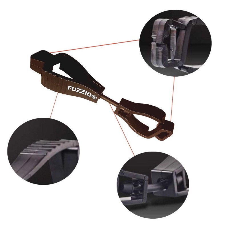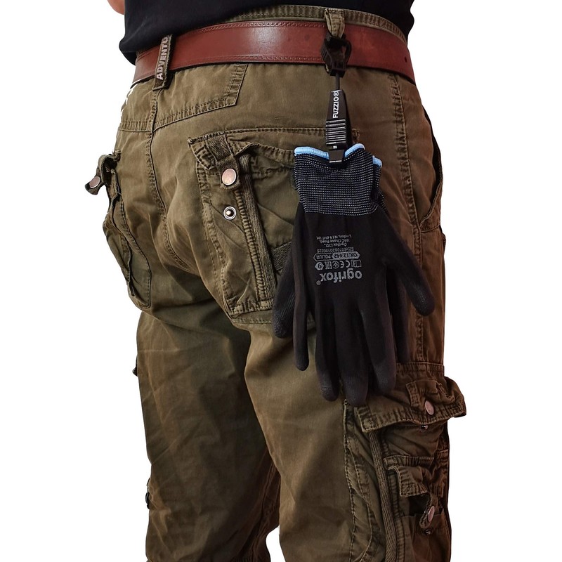 - as the clips are suitable for fastening to the belt loop and other places. Simply attach the small end around the belt loop or directly to clothing and attach the large end to the gloves.