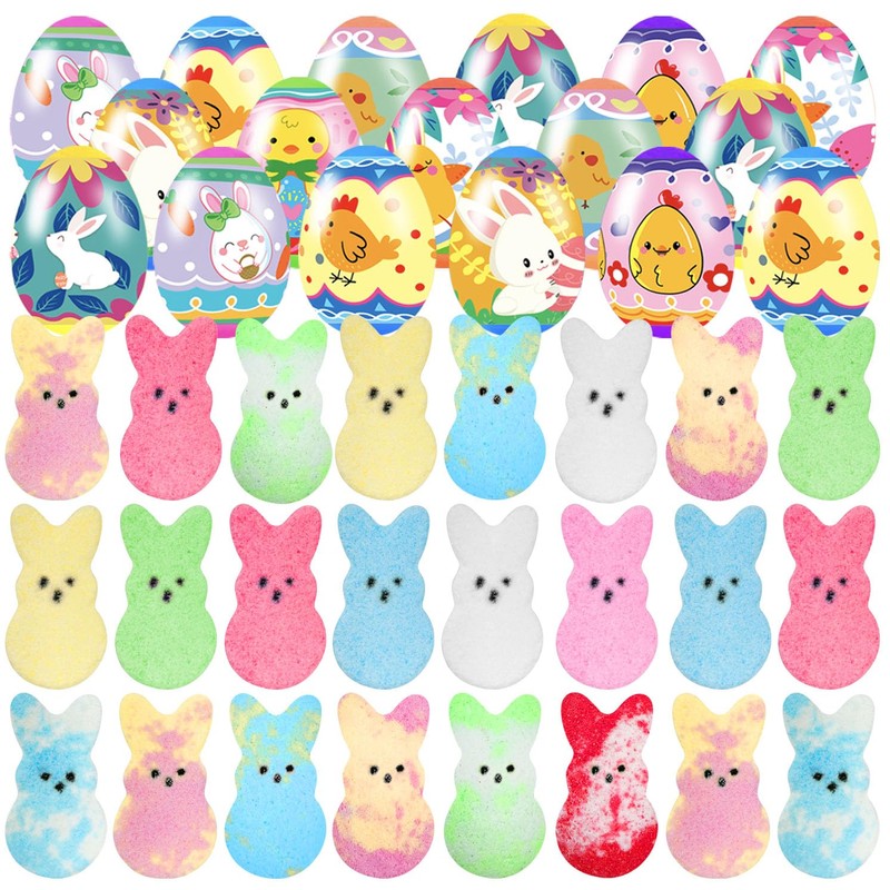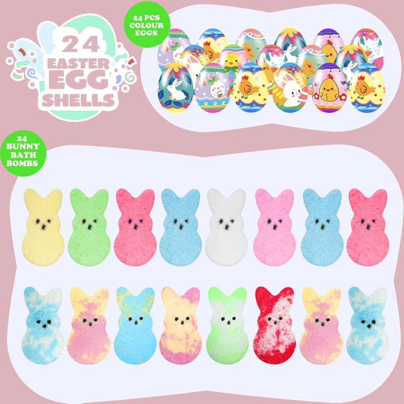 Holydeck 24 Pcs Easter Eggs with Bunny Bath Bombs Inside PreFilled Easter Eggs with Bunny Bubble Bath Toys for Kids Girls Boys Easter Eggs Hunt Easter Basket Stuffers Party Favors Gifts