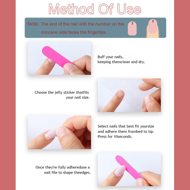 - 🌹【3-minute Manicure】Press-on false nails are friendly to beginners. After choosing the right size of false nails, you can complete the salon-like manicure with double-sided jelly glue and nail file.