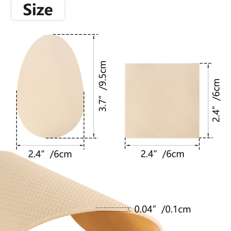 - You will receive 12 pairs of Shoe Pads, 6 pairs of oval Non-Skid Shoe Pads 9*6cm/3.5*2.4inch, 6 pairs of square Non-Skid Shoe Pads, 6 x 6cm/2.4 x 2.4inch. You can cut it to the suitable size for different purpose. Don't worry about slipping on smooth floor, the self-adhesive anti-slip pad can provides friction, has strong self-adhesive, safe and non-slip, it will give you more balance when you're wearing beautiful heels to a party or work.