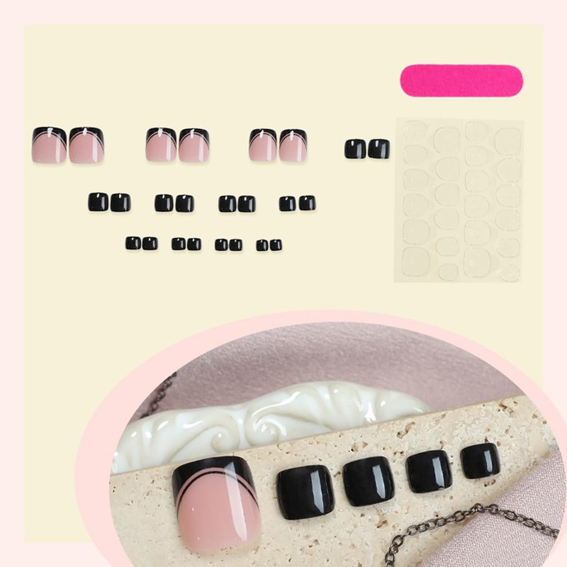 24 Pcs Press On Toenails for Women MINGCHUN Summer Pink Solid Color Black Toe Nails Press Ons Toe Nail Tip with Tool Fake Nails Full Cover False Toenails with Black French Glossy Design