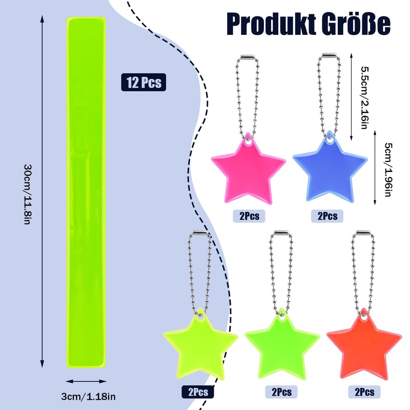 - 🌟BEAUTIFUL & EXQUISITE: Beautiful & Exquisite: The reflective wristband has a built-in steel plate insert, which can flexibly form a unique reflective sticker on the wrist, which is fun and practical. Star pendants in different colours can be used as fashionable decorative pendants for daily use, which perfectly match clothes and items. At night, reflective stars can improve visibility at night, serve as a safety warning.