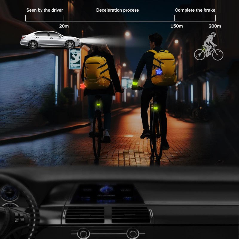 The combination of reflective bracelets and reflective pendants allows for 360° visibility.
