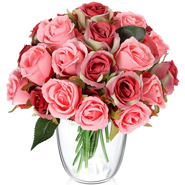 - Package includes: you will get a box with 24 pieces artificial rose flowers, each fake rose has leaf and stem, enough quantity for you to use or replace in daily life or other important occasions, also packed well for avoiding being broken by the external force during transportation