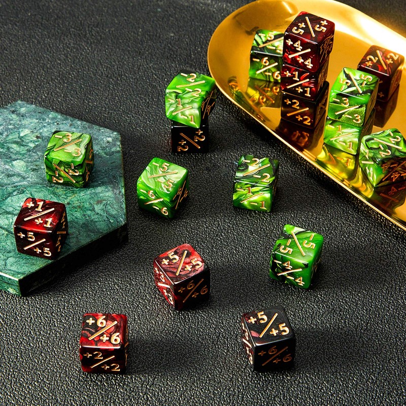 - Package quantity: comes with 24 pieces of dice counters, including 12 pieces positive dice counters and 12 pieces emerald negative dice counters, nice combination for satisfying your gaming using or replacing