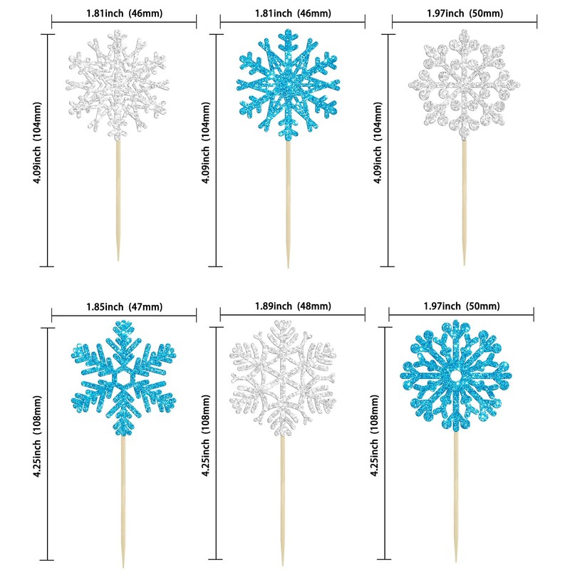 - El paquete incluye: 24 adornos de copos de nieve. Estos adornos de copo de nieve para cupcakes son muy agradables y suficiente cantidad para tu uso. Perfecto para fiesta de cumpleaños temática de copo de nieve
